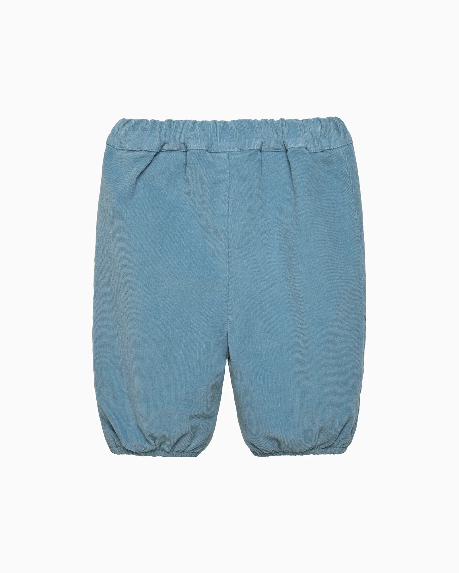 A classic Trotters style, these smart Ā 3/4 Ā length pull-up trousers for baby boys come in a soft, sky blue cord and feature an elasticated back, pleated front with button detailing and elasticated leg cuffs. A smart, versatile style, simply pair with a classic white shirt or body for a smart look.