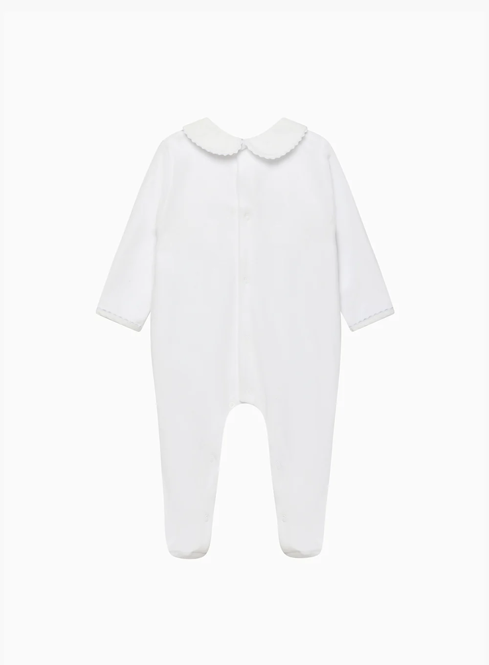 A bit extra special, our Dasher all-in-one is made in a super soft velour. The chic, unisex white colour is embellished with the addition of a gold reindeer embroidery design sitting within a smart smocked panel. The perfect 'My First Christmas' outfit, this makes an ideal gift for any new arrivals.