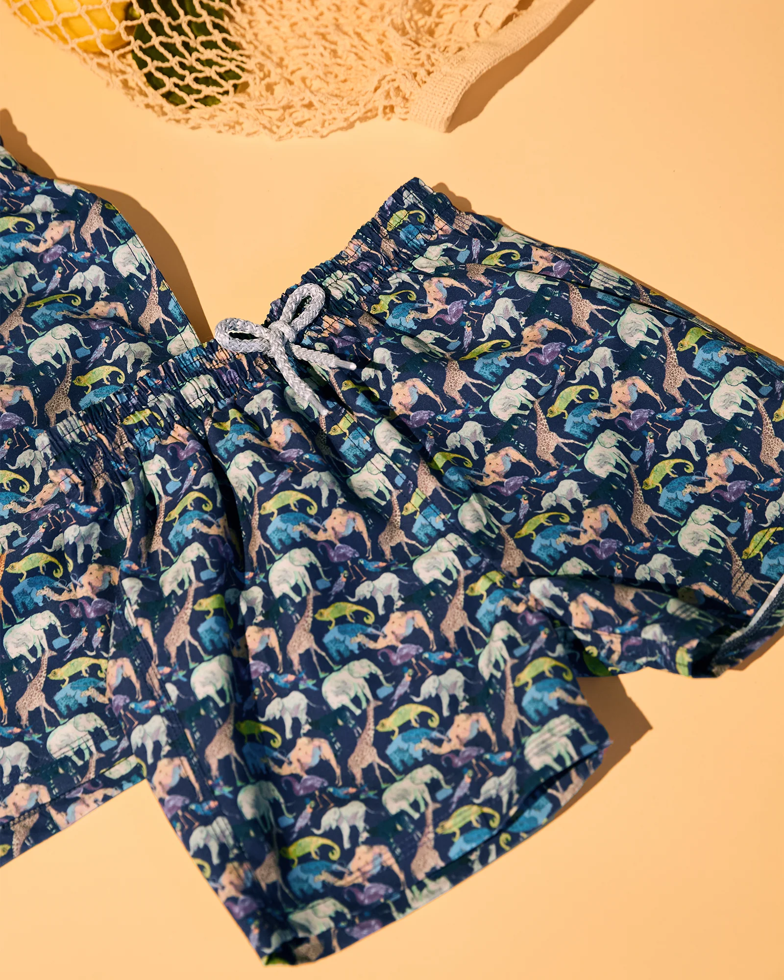 A Trotters favourite, our zoo swimshorts are made in Liberty's Queue for the Zoo print fabric, a charming animal print that was part of a collaboration between the Liberty design team and children's author, OK David. They feature the same improved fit as the rest of our range as well as a drawstring waist, back patch pocket and quick dry fabric.