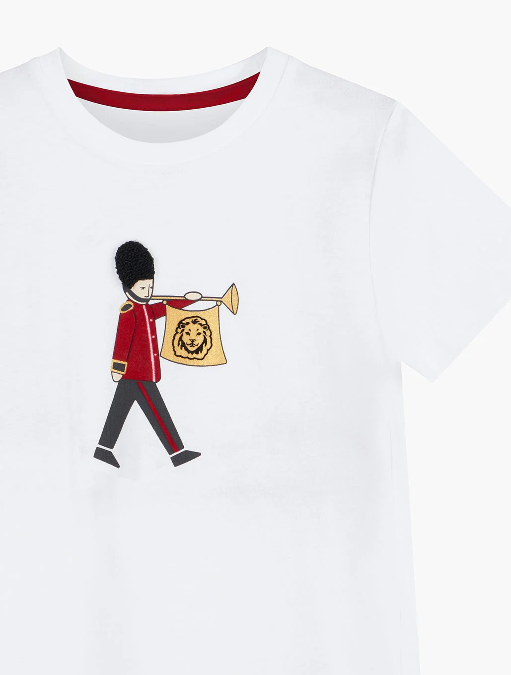 This soft, short-sleeved t-shirt for boys comes in a classic white 100% cotton and features our signature guardsman motif on the front. Pair with our Charlie Chino shorts for a great everyday outfit.
